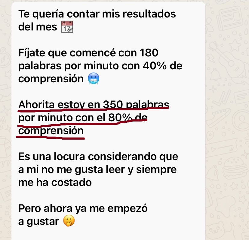 Y como ya te dije, NO SE TRATA DE UN CURSO, en donde vas a tener que pasar horas y horas haciendo prácticas aburridas y cansadas. Es un método que literalmente son “juegos” de destreza mental que con 15 minutos al día desarrollan tus capacidades de lectura, memoria y concentración.