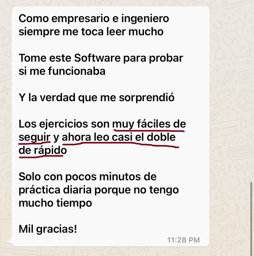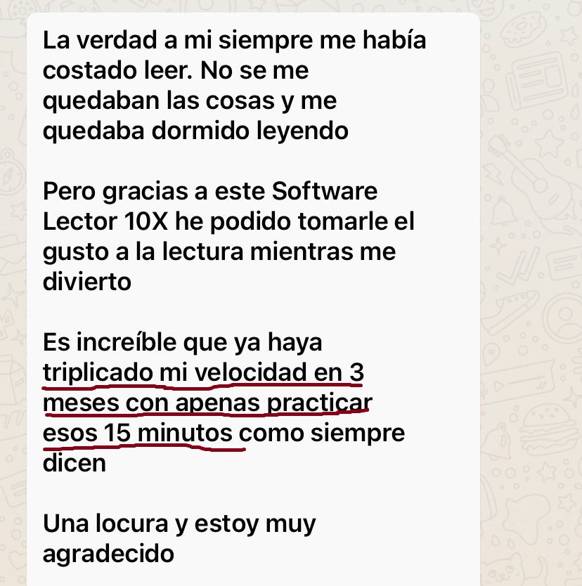 Lo mejor de este software es que NO ES UN CURSO DE LECTURA. Sino que es una Herramienta de inteligencia artificial, que con tan solo 15 minutos de práctica diaria, te permitirá recuperar tus niveles de concentración, acelerar tu velocidad de lectura y finalmente poder comprender los textos que lees como un genio.